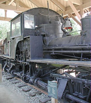 Rumsey Lbr. Co., #2, Big Rapids, MI (c1890) [36"] Hart & Horning #122, Woodville, MI (1901) El Dorado Lbr. Co. #2, Camino, CA (c1905) Converted to oil burner (1911) C. D. Danaher Pine Co., #2, Camino, CA (10-24-1913) Badly damaged in engine house fire, rebuilt with home-made steel cab (1915) R. E. Danaher Co., #2, Camino, CA (1918) Michigan-California Lbr. Co. #2, Camino, CA (late 1930's) Rebuilt with new boiler from Lima and 2nd home-made steel cab (by 11-1938) Lima Locomotive Works, Inc., provided two commemorative plates, to note this was oldest surviving Shay (1949) Retired from service and stored (1951) On display at Camino, CA (c1980) Planned donation to Smithsonian Institution as oldest surviving Shay (5-2-1981) Displayed at Railfair 1981, at Museum of Railroad History, Sacramento CA for 8-days (by 1984) Planned donation to Smithsonian Institution dropped. (1994) Sierra Pacific Industries, Anderson CA, purchased Michigan-California Lbr. Co. & Shay, which remained in Camino (c1995) Donated Shay to Turtle Bay Exploration Park in Redding, CA; remained on display in Camino awaiting move to Redding, until Paul Bunyan's Forest Camp was ready. (4-1997) Moved from Camino to Turtle Bay Exploration Park, Redding, CA, for display in Paul Bunyan's Forest Camp section. |
