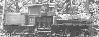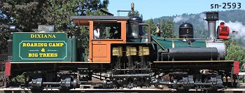 | Owners: Alaculsy Lbr. Co. #3 (2nd), Conasauga, TN (1917) Tennga Lbr. Co. #3, Conasauga, TN (3-1919) Southern Iron & Equip. Co. (D) #1466, Atlanta, GA (8-22-1919) W. M. Ritter Lbr. Co., Smoky Mountain RY #3 (2nd), Proctor, NC [36"] W. M. Ritter Lbr. Co. #3, McClure, VA (1938) Coal Processing Corp., #3 (carried both #3 & #2593), Dixiana, VA (1962) Roaring Camp & Big Trees Narrow Gauge RR #1 "DIXIANA", Felton, CA Converted to oil burner |