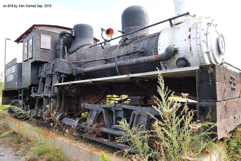 The same day we went east to the Atlantic Ocean and down to Biddeford ME. The final shay of the trip was sn918, located on the side of the road to mark the entrance to Biddeford Station on Hwy 1. This shay will not be restored. Parts of the cab are actually plywood to recreate the original cab shape. Biddeford Station is an interesting attraction using a club car as part of a restaurant and a few other nice attractions.